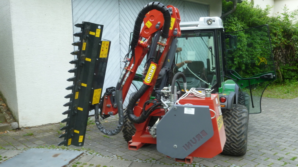 Das Bruni Auslegemulchgerät NTP 370/470 mit hydraulischem einem Mähkopf ausgestattet.