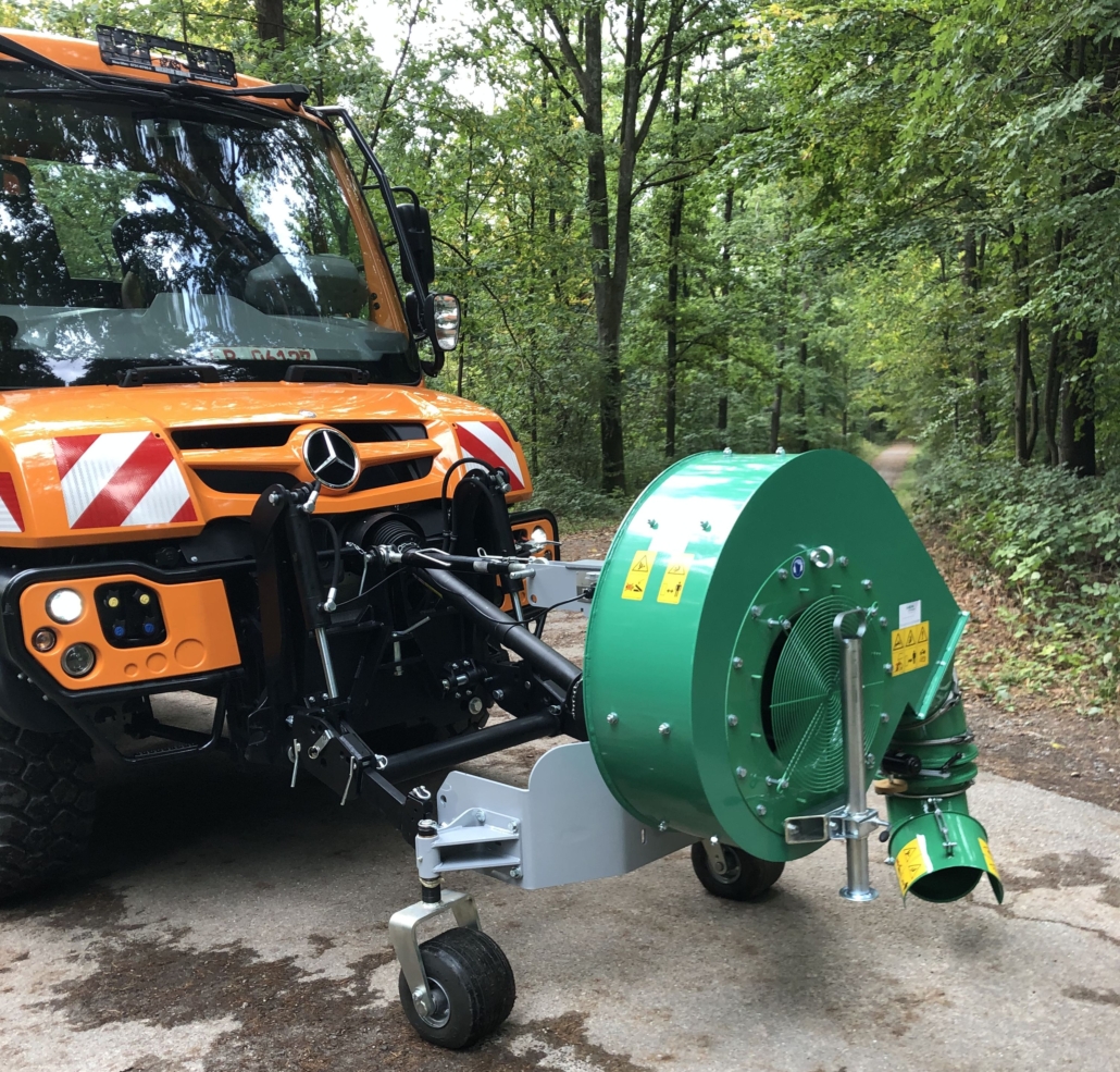Das Hochleistungs-Zapfwellen-Laubgebläse BT600 ist für Heck- oder Frontanbau an nahezu alle Trägerfahrzeuge adaptierbar.