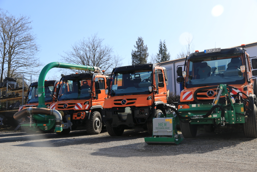 Entdecken Sie die HEN-Lösungen für Wegepflege mit Unimog, Abrollsysteme und Kommunale Anbaugeräte für Unimog.