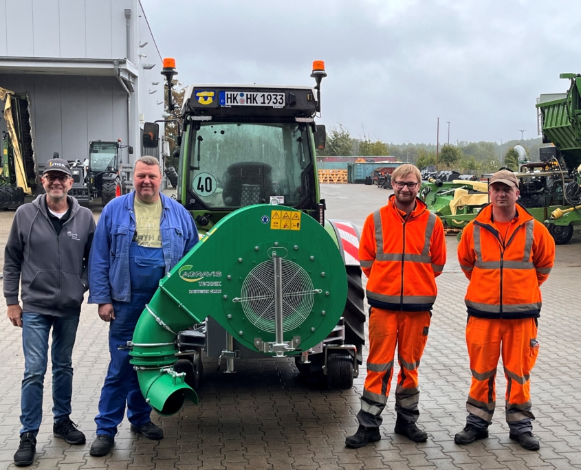 Auslieferung und Einweisung eines HEN Laubsaugwagens EDK 40 über den Händler Firma Raiffeisen Technik Ostküste GmbH an die Schleswiger Stadtwerke GmbH.